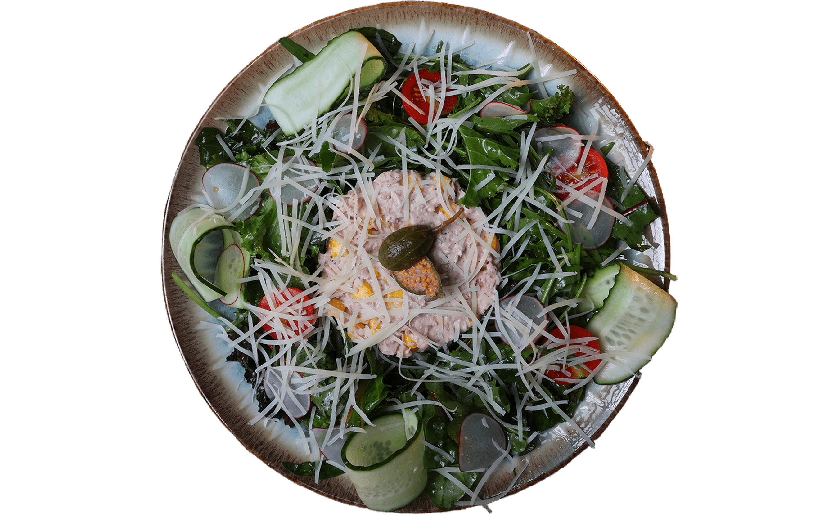 Թունա ձուկ, պարմեզան, միքս կանաչի, սոուս