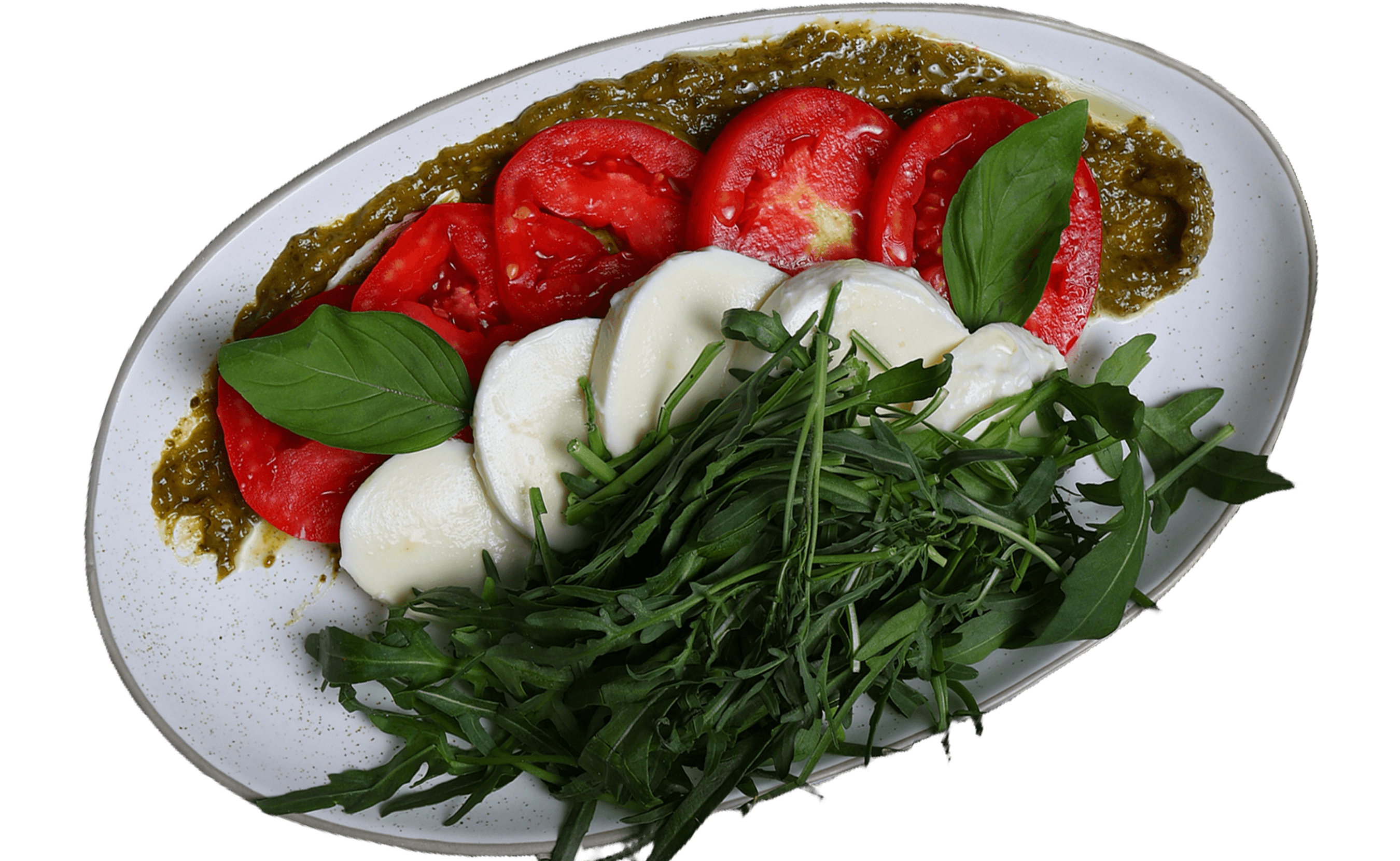Լոլիկ, ֆռեշ մոցառելա, ռուկոլա, պեստո սոուս