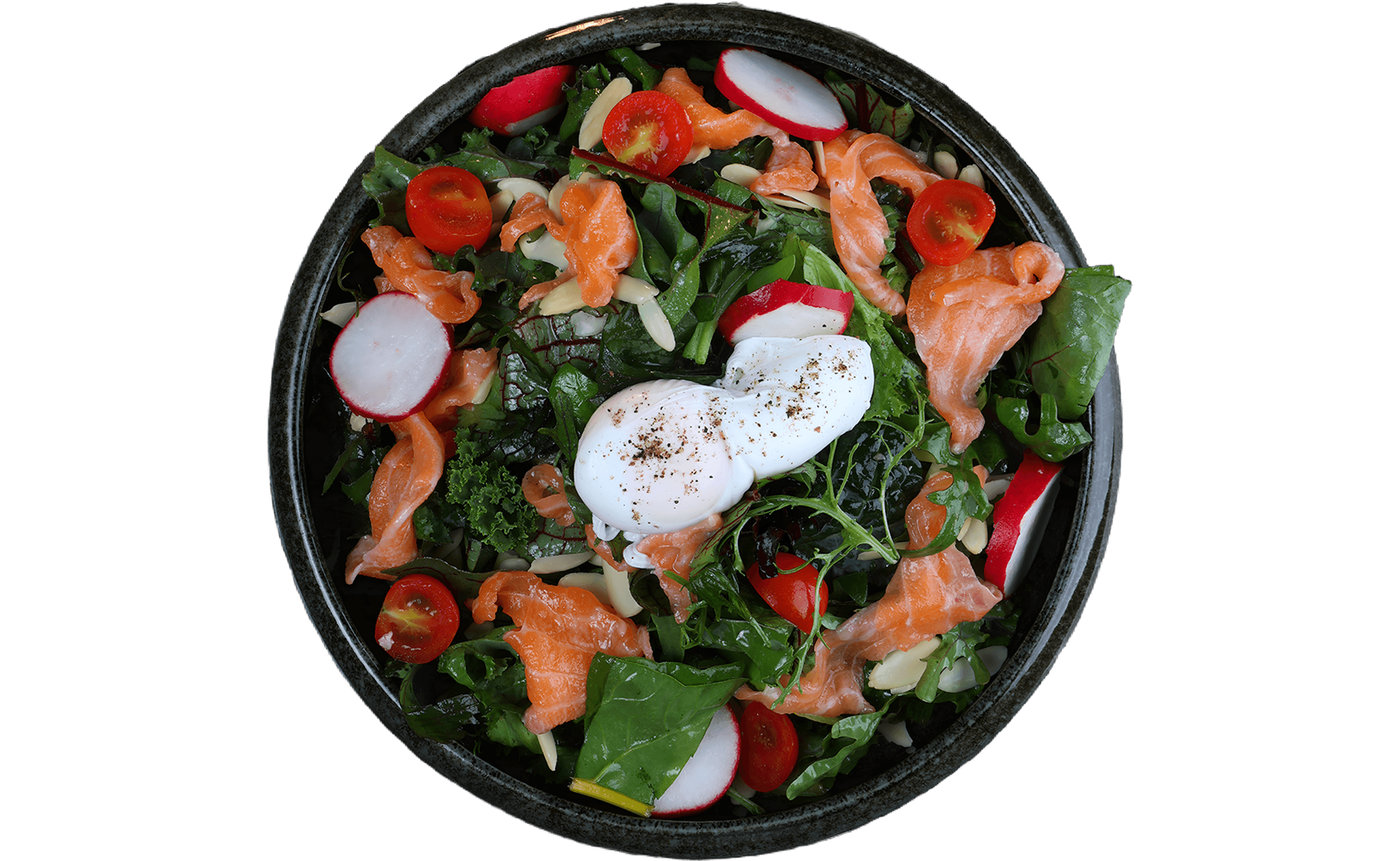Միքս կանաչի, սաղմոն, ձու, քաղցրաթթու սոուս