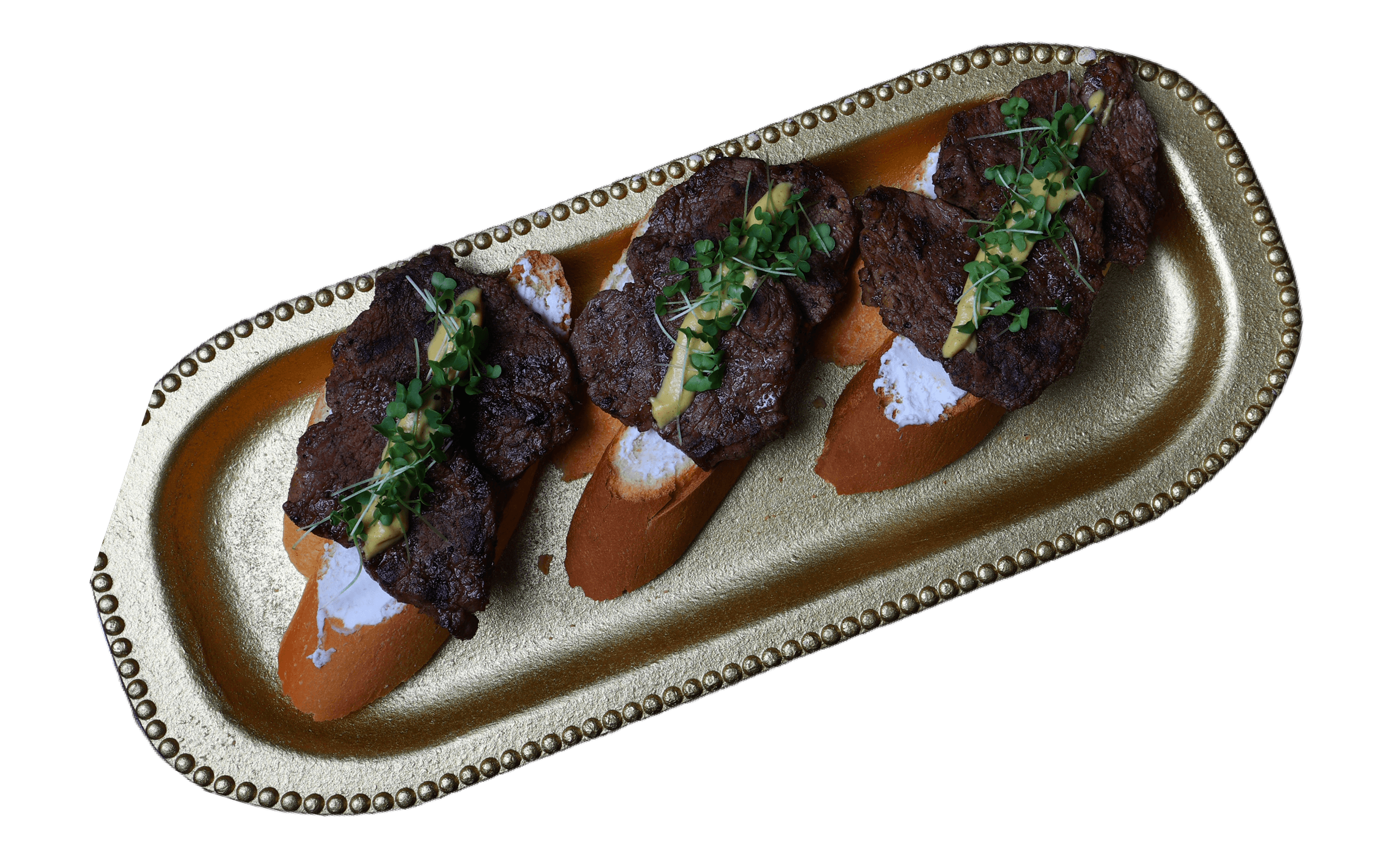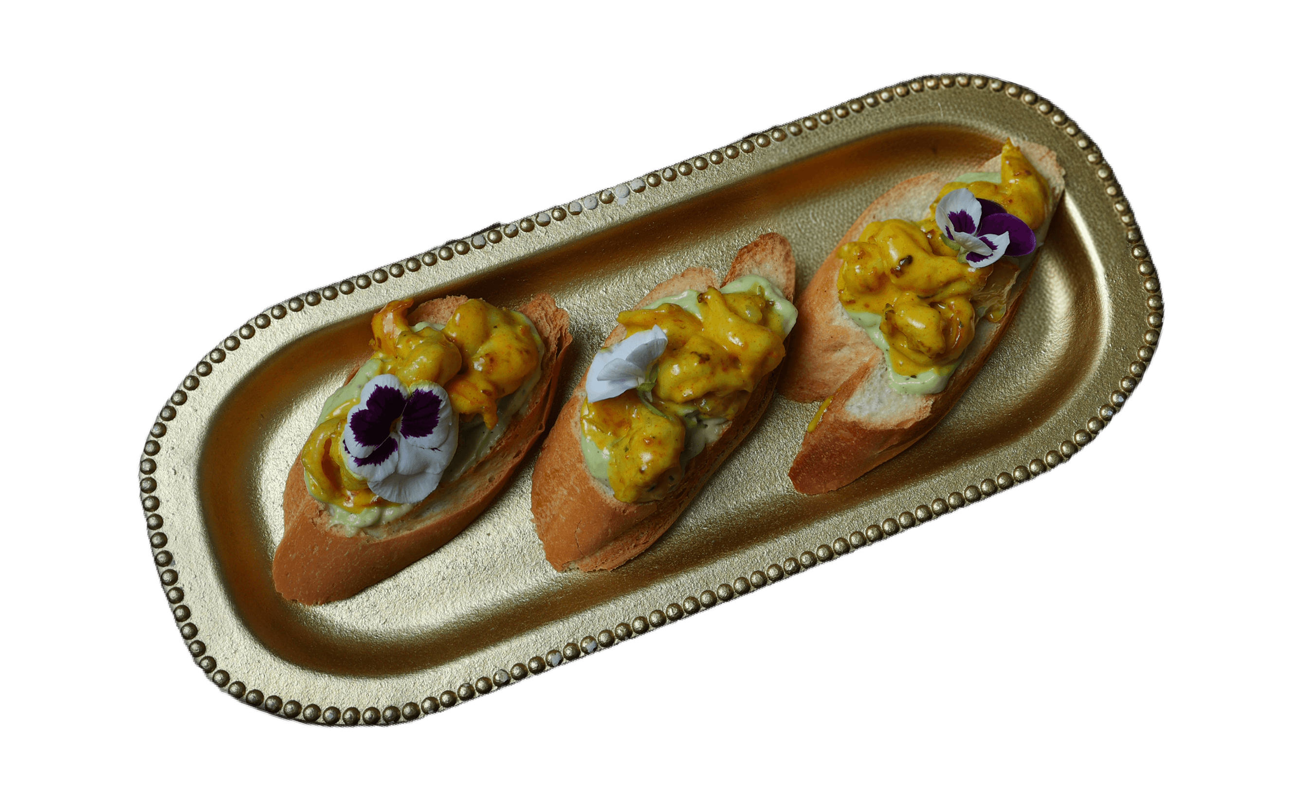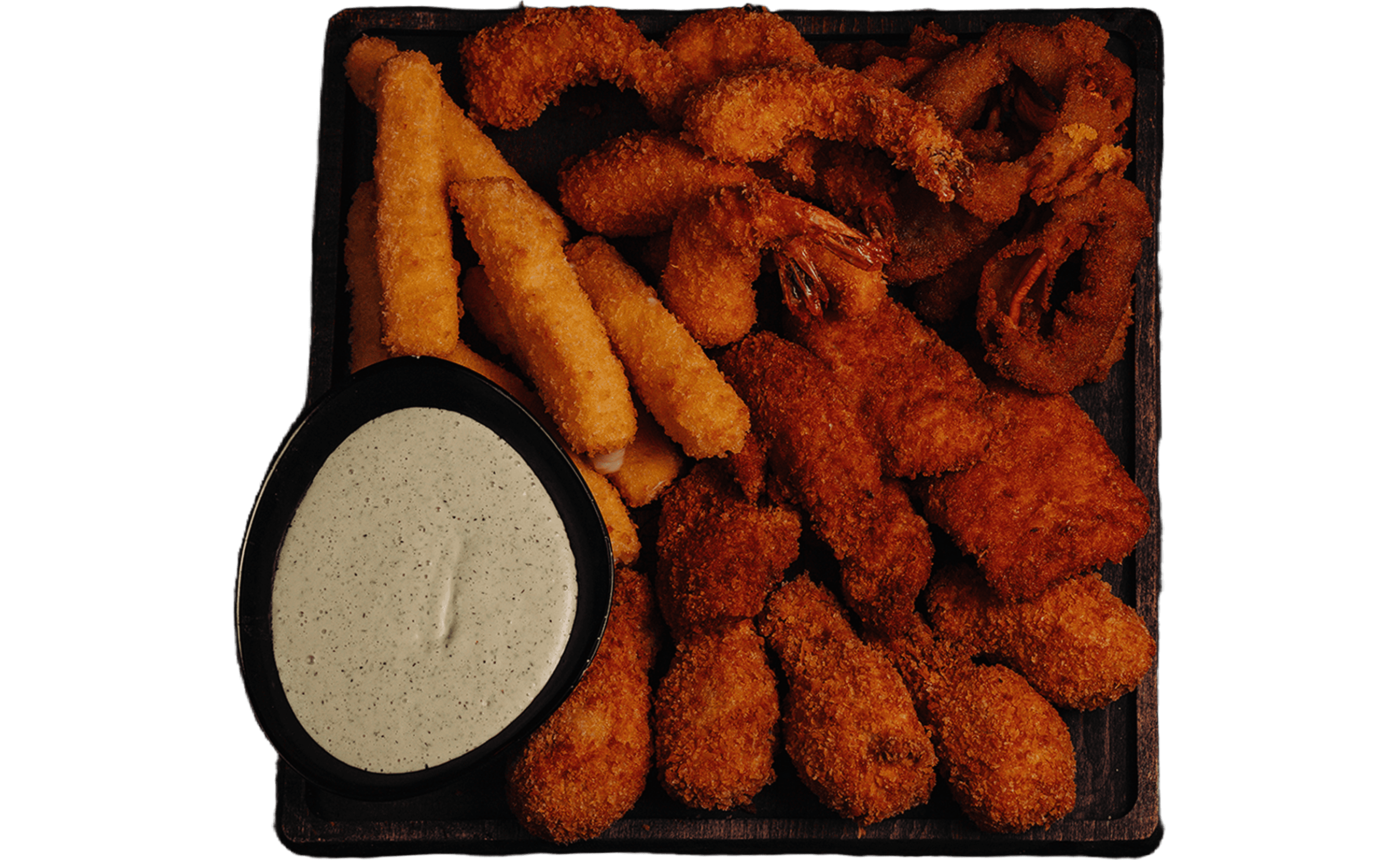 Սուխարապատ հավի կրծքամիս, հավի թեւիկ սուլուգունի ձողիկ, կալմառի օղակ, սուխարապատ ծովախեցգետին, սխտորի սոուս